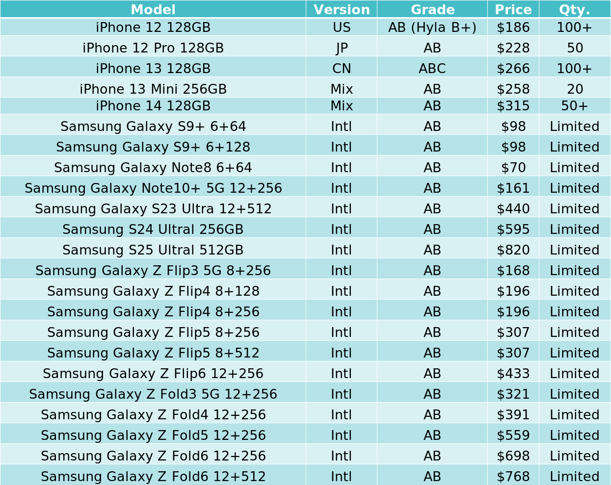 Giggle Trade Price List of Used & Refurbished Phones - 2025-09-01