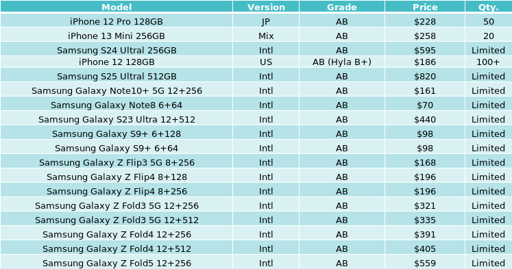 Giggle Trade Price List of Used & Refurbished Phones - 2025-09-01